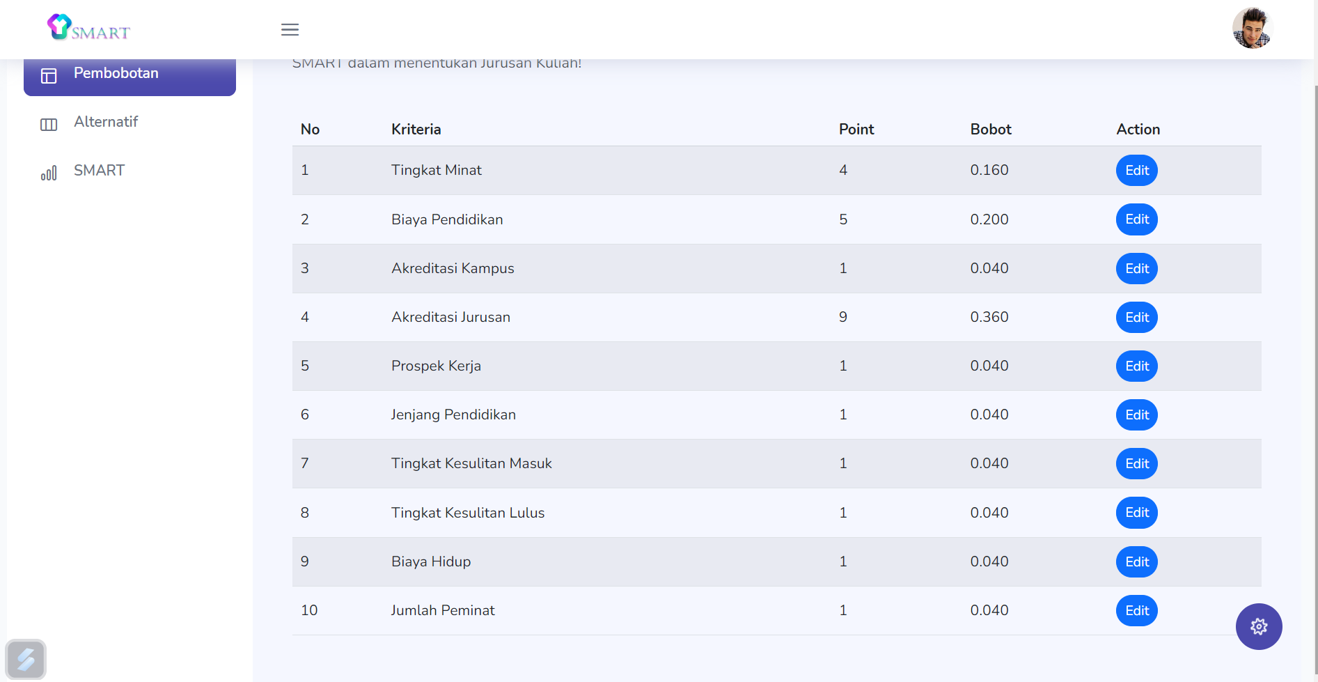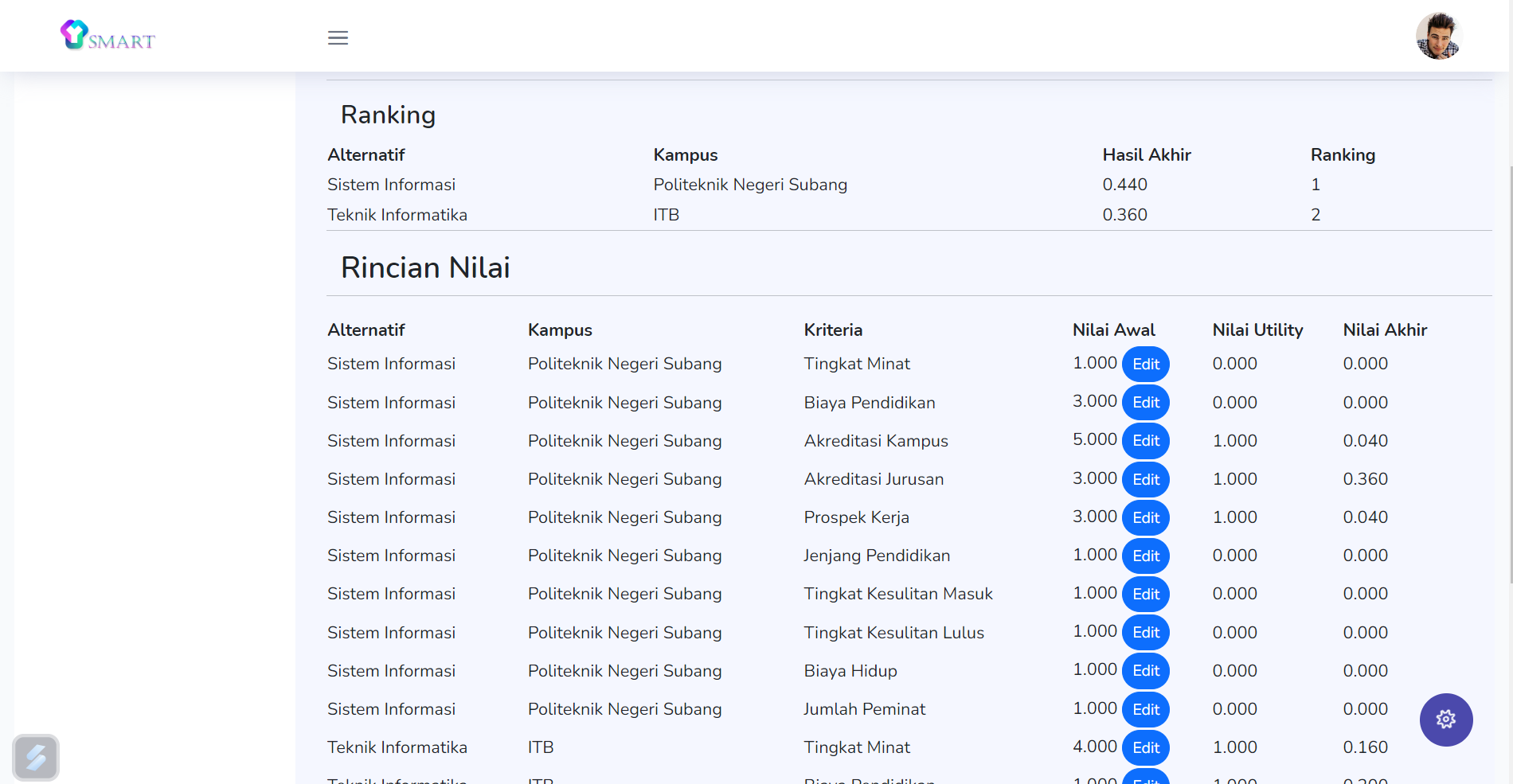 A decision-making platform built with Laravel and MySQL. It helps students choose university majors using the SMART method based on key criteria.